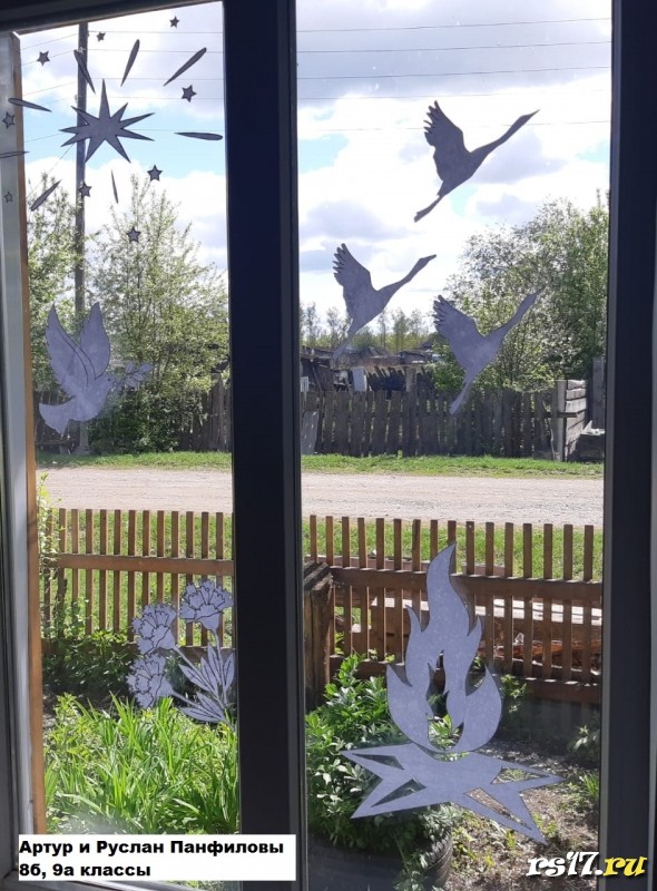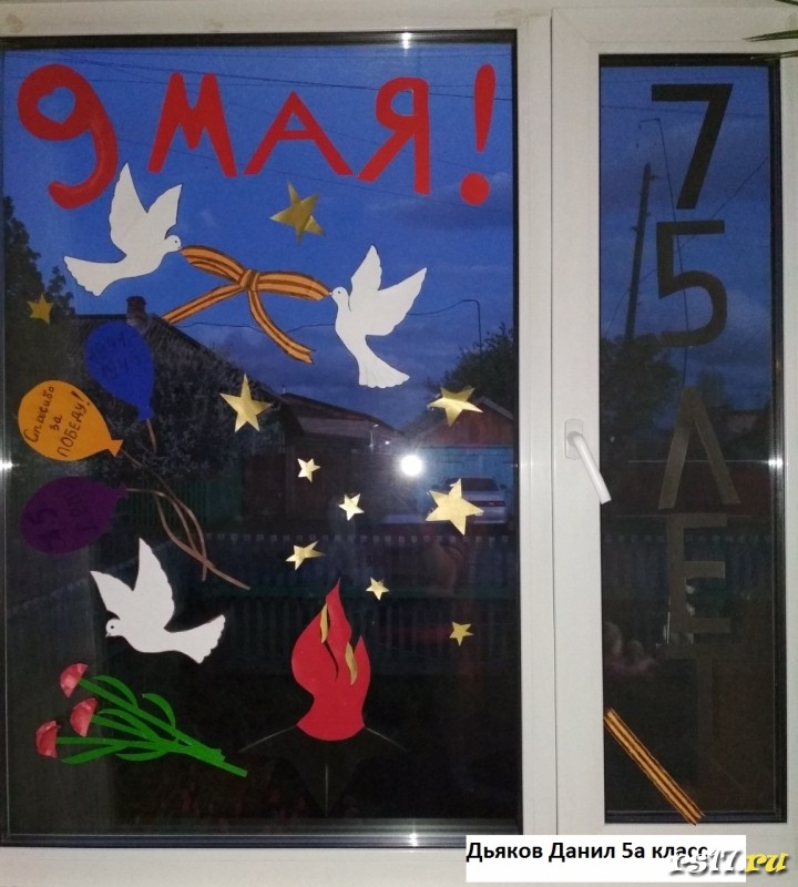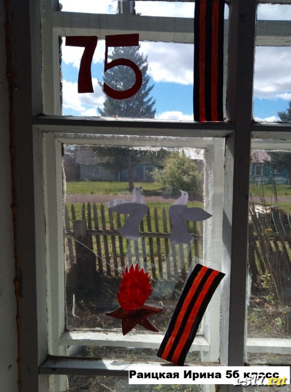 Даже оставаясь дома, наша школа приняла активное участие в массовом праздновании, 75 годовщине ВОВ, Много окон в нашем поселке сказали всем героям ВОВ «Спасибо!». Они украсили окно,наклейками, самодельными витражами с изображением салюта, воздушных шаров, голубей, плакатами о событиях в Великой Отечественной войне, и выложили фото в социальные сети с #Мирные_окна, и на наш сайт.