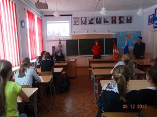 5 декабря 2017г. в нашей школе урок-лекция по теме: «Всероссийское движение юнармия», приуроченная к Дню Воинской славы! Именно в этот день 5 декабря 1941 года Советская армия в первые перешла в контрнаступление под Москвой и это послужило героическим подвигом и оптимистическим настроением нашей Армии.
