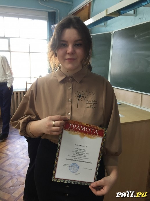 Победители: Панфилов Артур (9б класс) - История (учитель Ибрагимова Р.Ф.); Медведева Раиса (11 класс) - ОБЖ (учитель Кригер А.В.); Килин Алексей (8а класс) - География (учитель Ломова Г.Г.); Романин Николай (11 класс) - Право, (учитель Ибрагимова Р.Ф.); Бондарева Диана (9а класс) - Математика; Максимова Яна (9 а класс) -Биология , учитель Есякова Т.Ю.